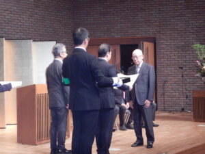 大会第1部では、多年防犯功労者に対する大阪府警察本部長感謝状が贈呈されたほか、防犯功労団体11団体、防犯功労ボランティア団体5団体、防犯功労者203名、防犯功労団体賛助会員2社1団体に対する表彰を行いました