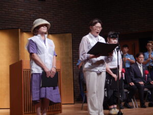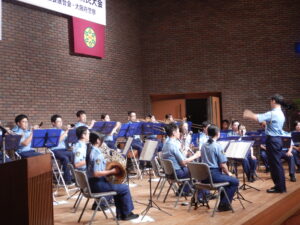 岸和田防犯協議会「ブライトパールズ」による大会宣言が採択された後、第2部では、大阪府警察本部生活安全指導班と四天王寺大学による防犯指導と大阪府警察本部音楽隊による演奏を行いました