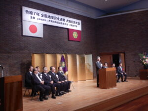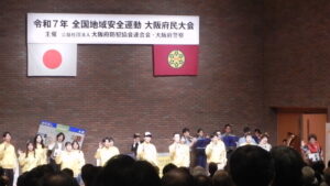 10月11日から実施される全国地域安全運動にさきがけ、9月27日(土)、大阪市阿倍野区民センターにおいて全国地域安全運動大阪府民大会を開催しました